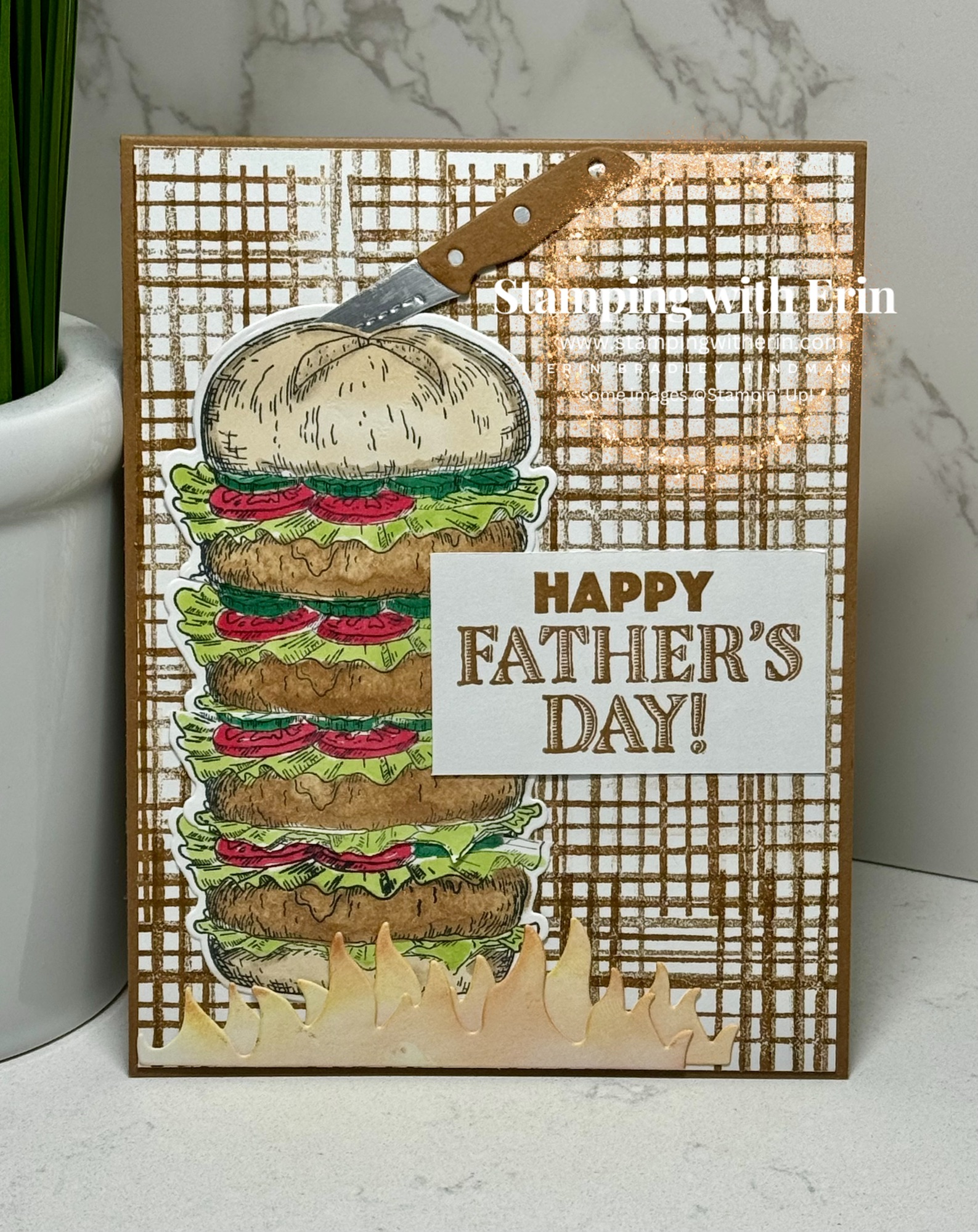 The knife was cut with Silver Foil and Pecan Pie. (the die cut for the burger has a little slit on the top for the knife!)
