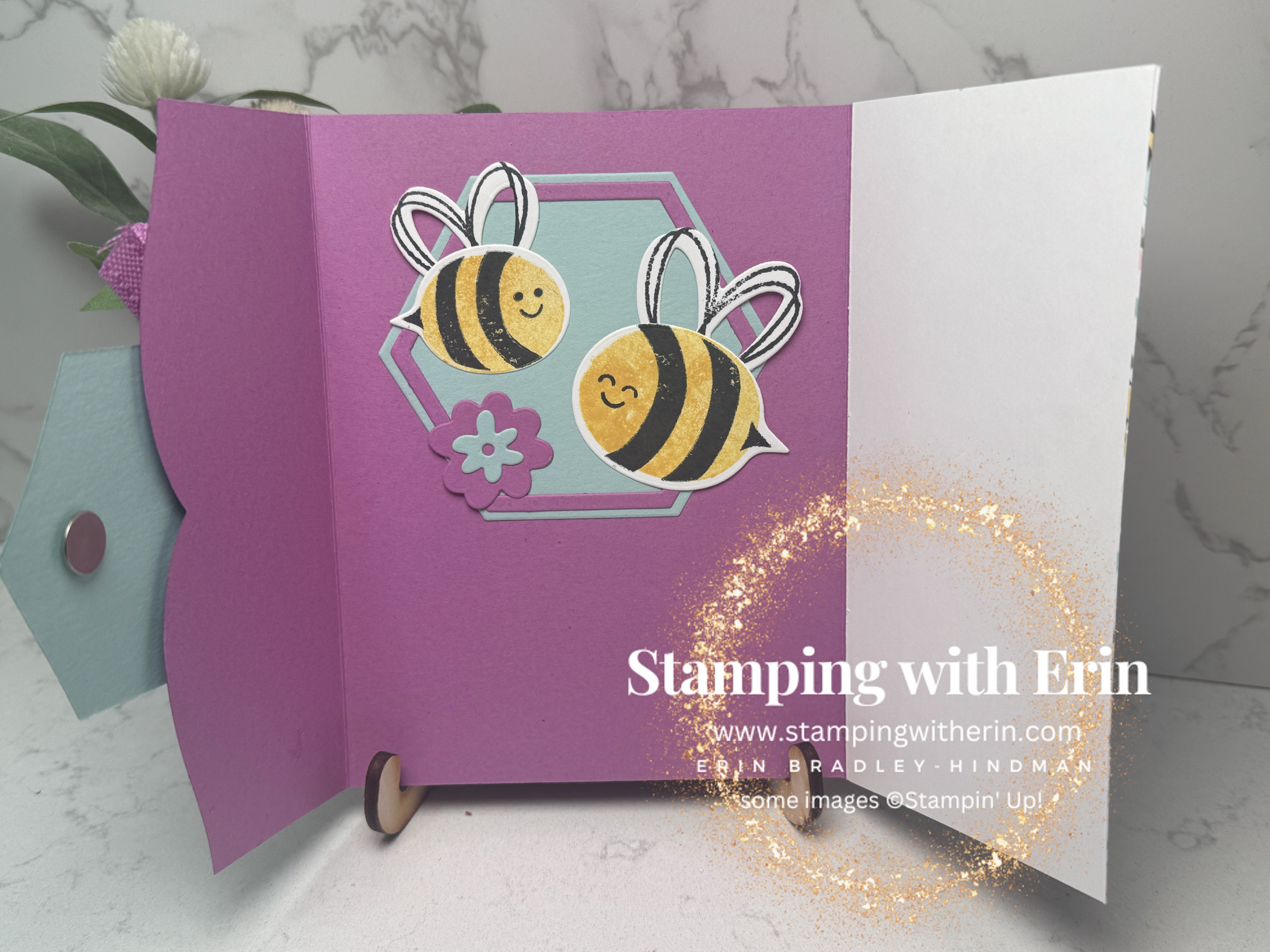 For the bees, I stamped with Lemon Lolly and Memento.